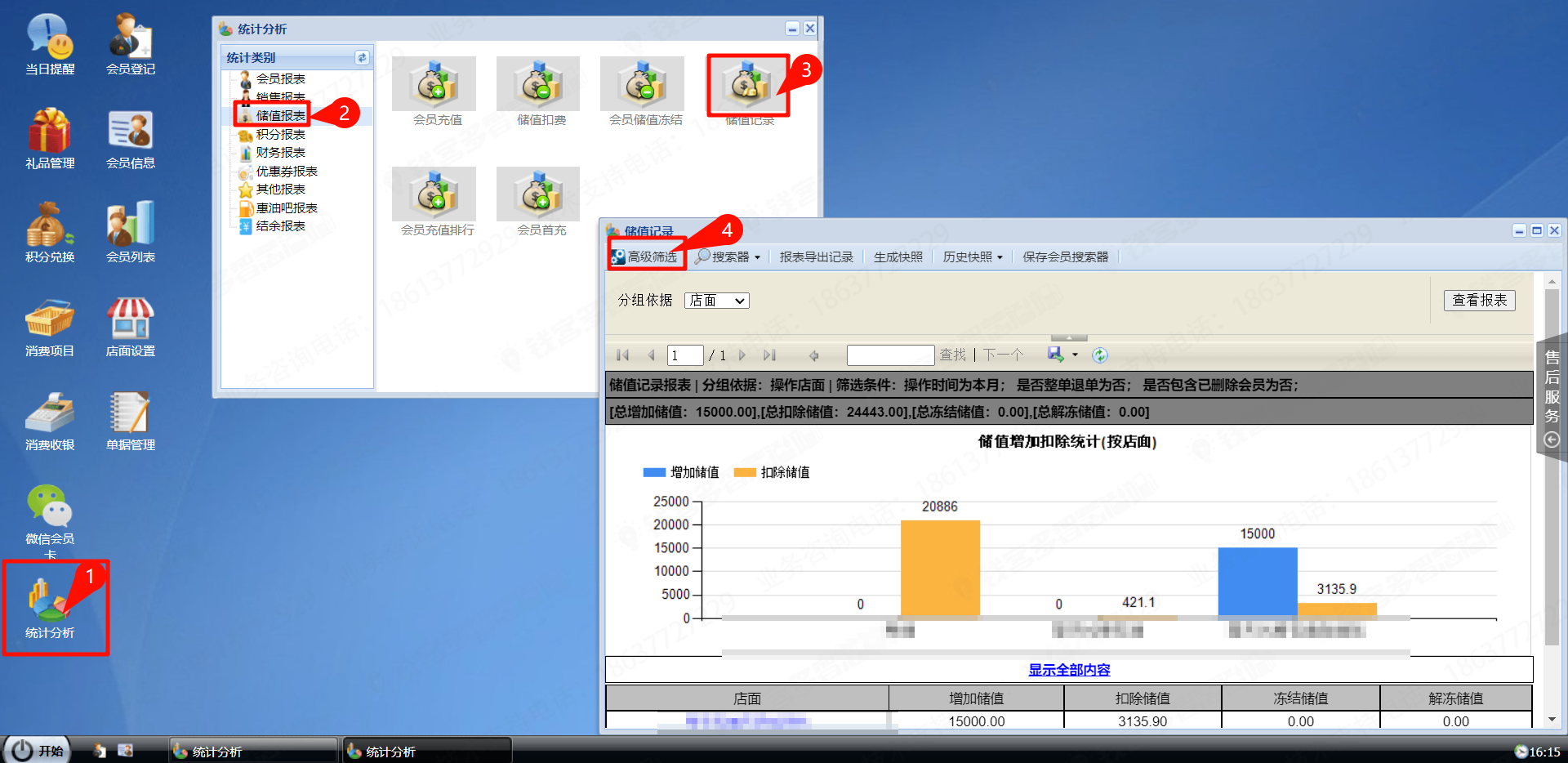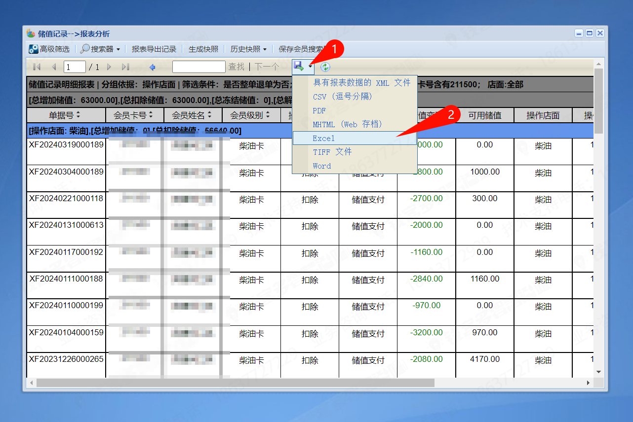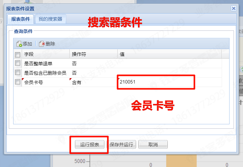 按照图中搜索器条件,输入要导出的手机号会员卡