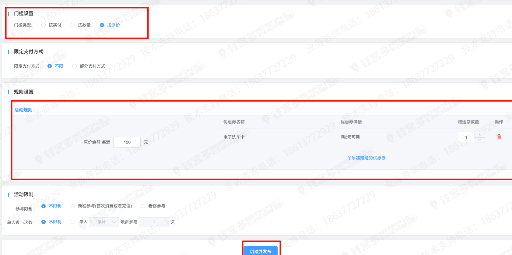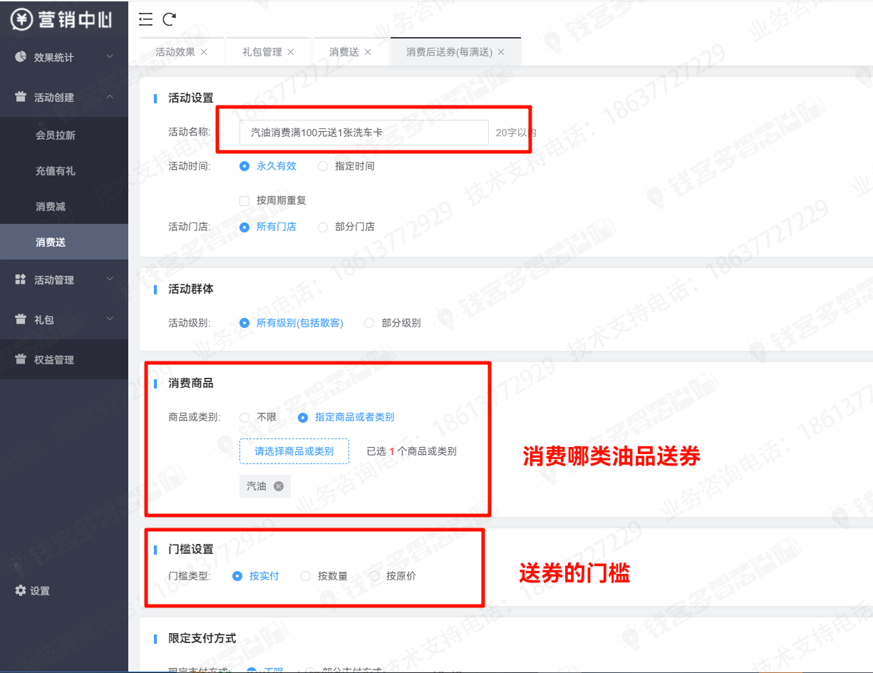 设置消费送洗车券