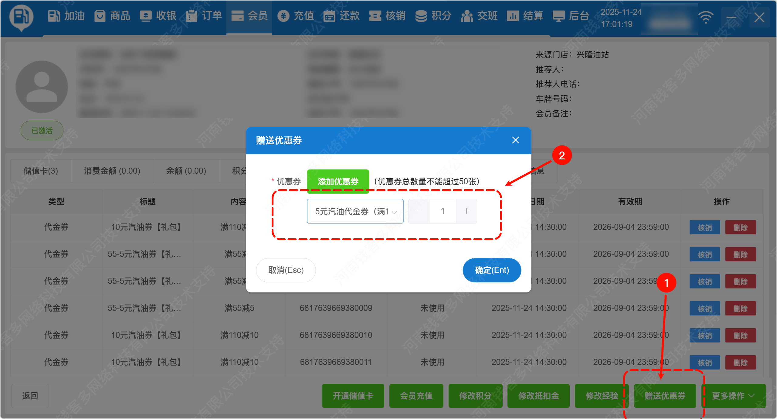 手动核销、发送优惠券