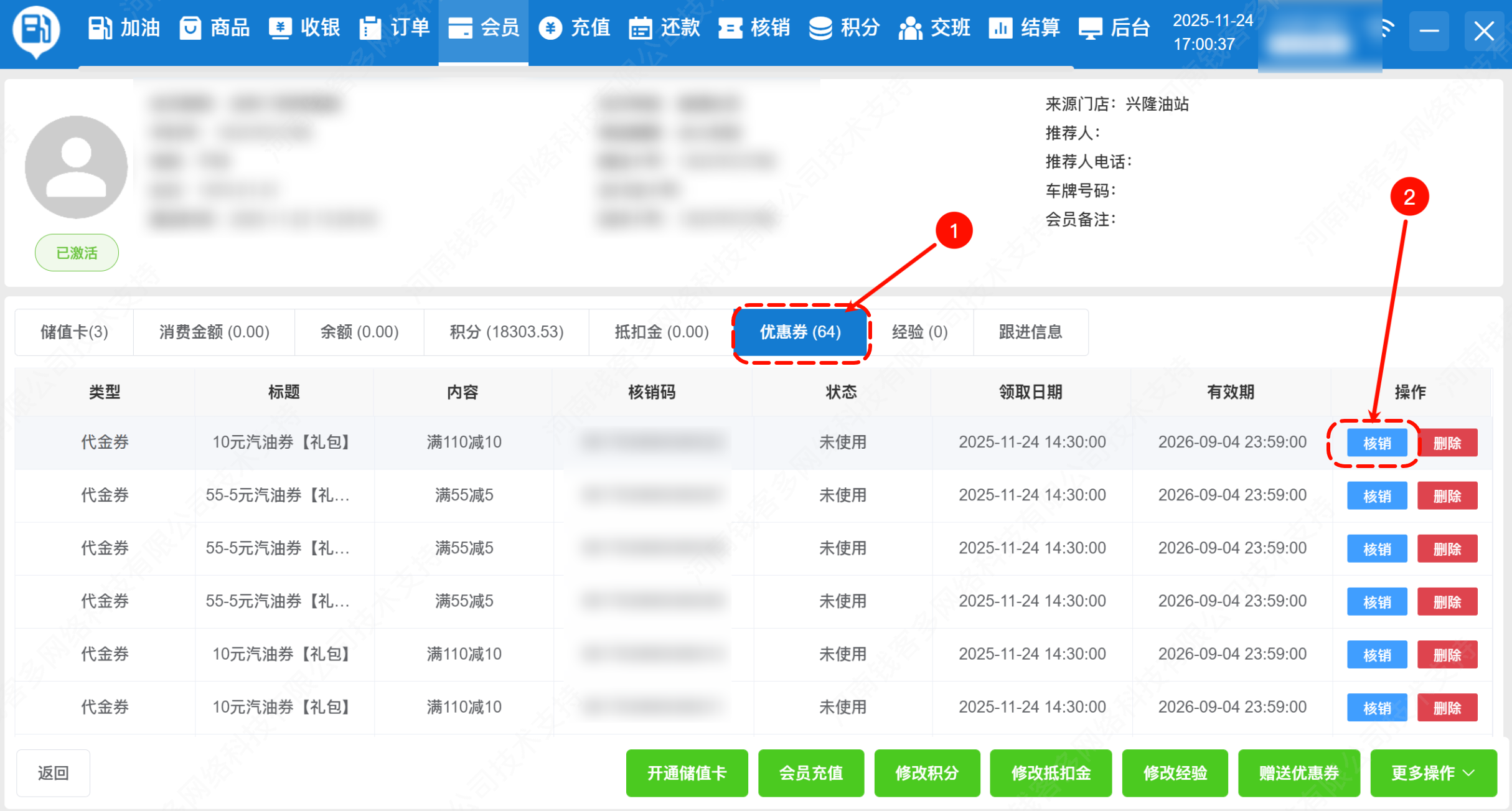 核销优惠券