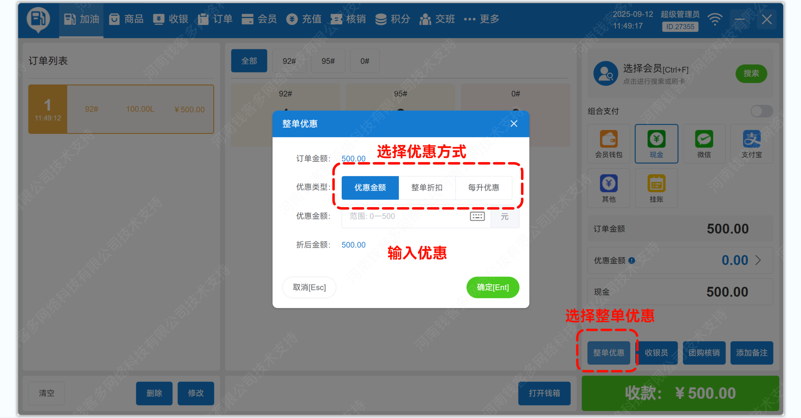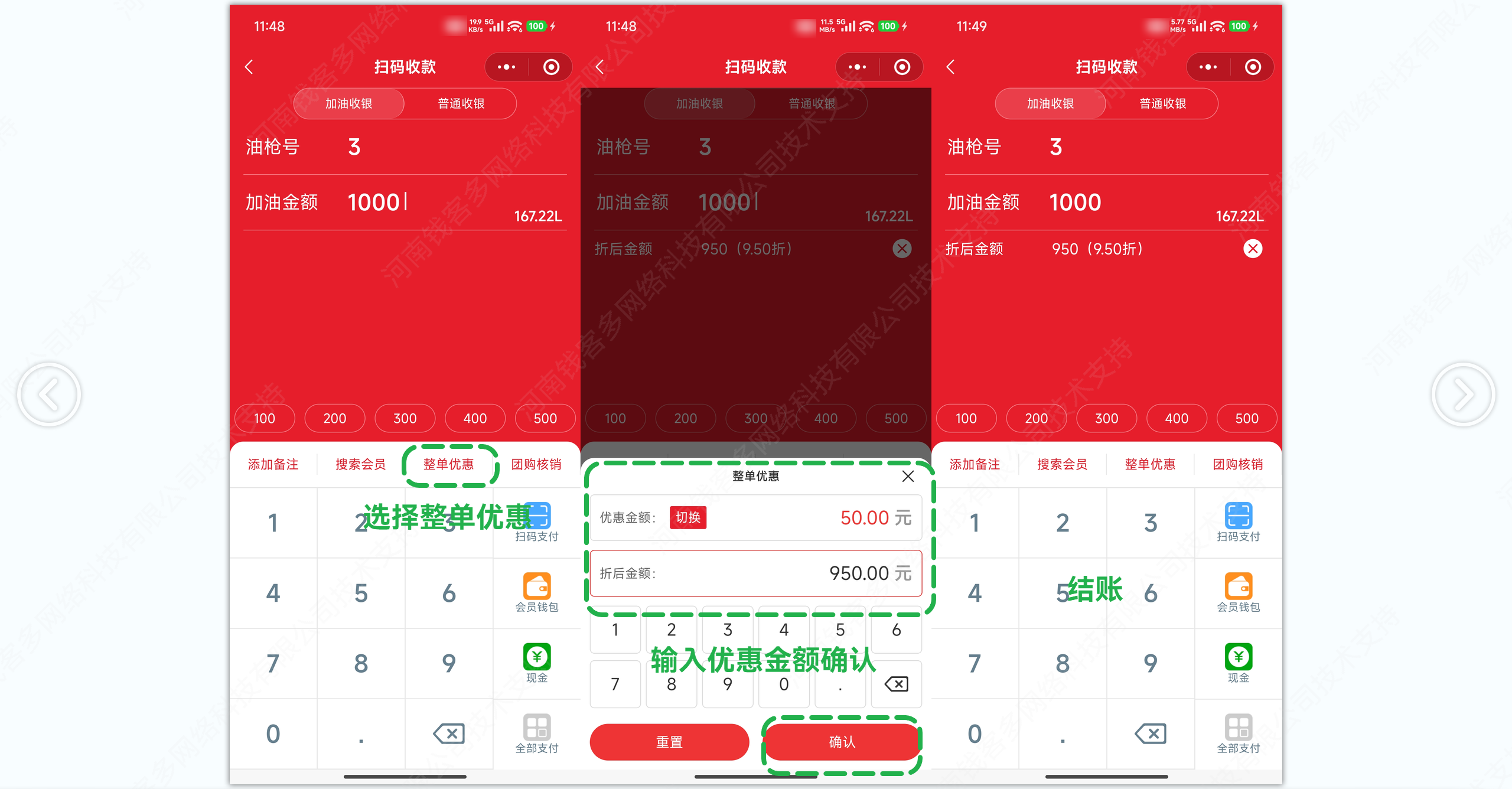 终端收银-整单优惠、手动优惠(每升优惠、整单折扣、优惠金额) 土拉 太米 » TM-终端客户端 318热度 小程序/POS端操作步骤 点击切换按钮可以选择优惠类型(每升优惠、整单折扣、优惠金额) PC端操作步骤