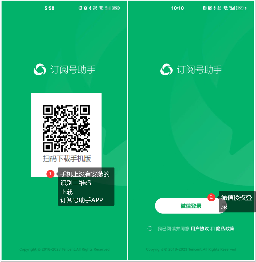 下载订阅号助手APP 微信登录 (需要管理员微信登录)