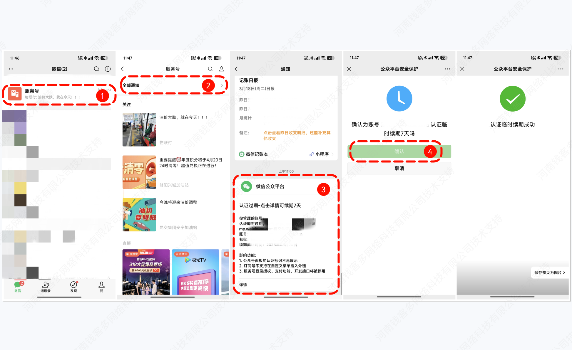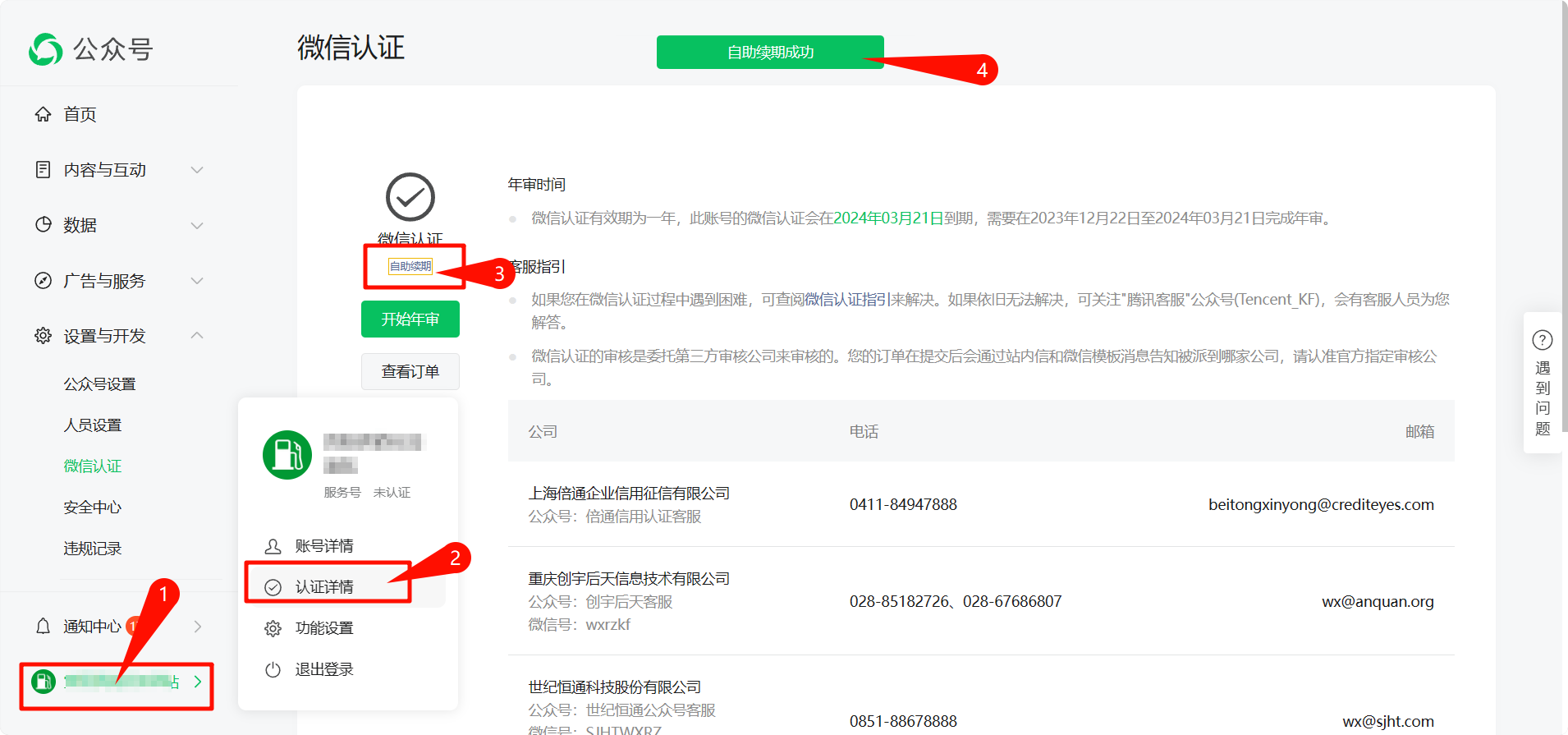 微信公众号 年审到期 临时延期7天 续期步骤 土拉 微信公众平台 335热度 可申请临时延期7天操作,点完延期10分之左右恢复 手机端延期步骤 电脑端延期步骤 第一步:打开微信公众号平台 管理员扫码登录 第二步:按照下方步骤操作